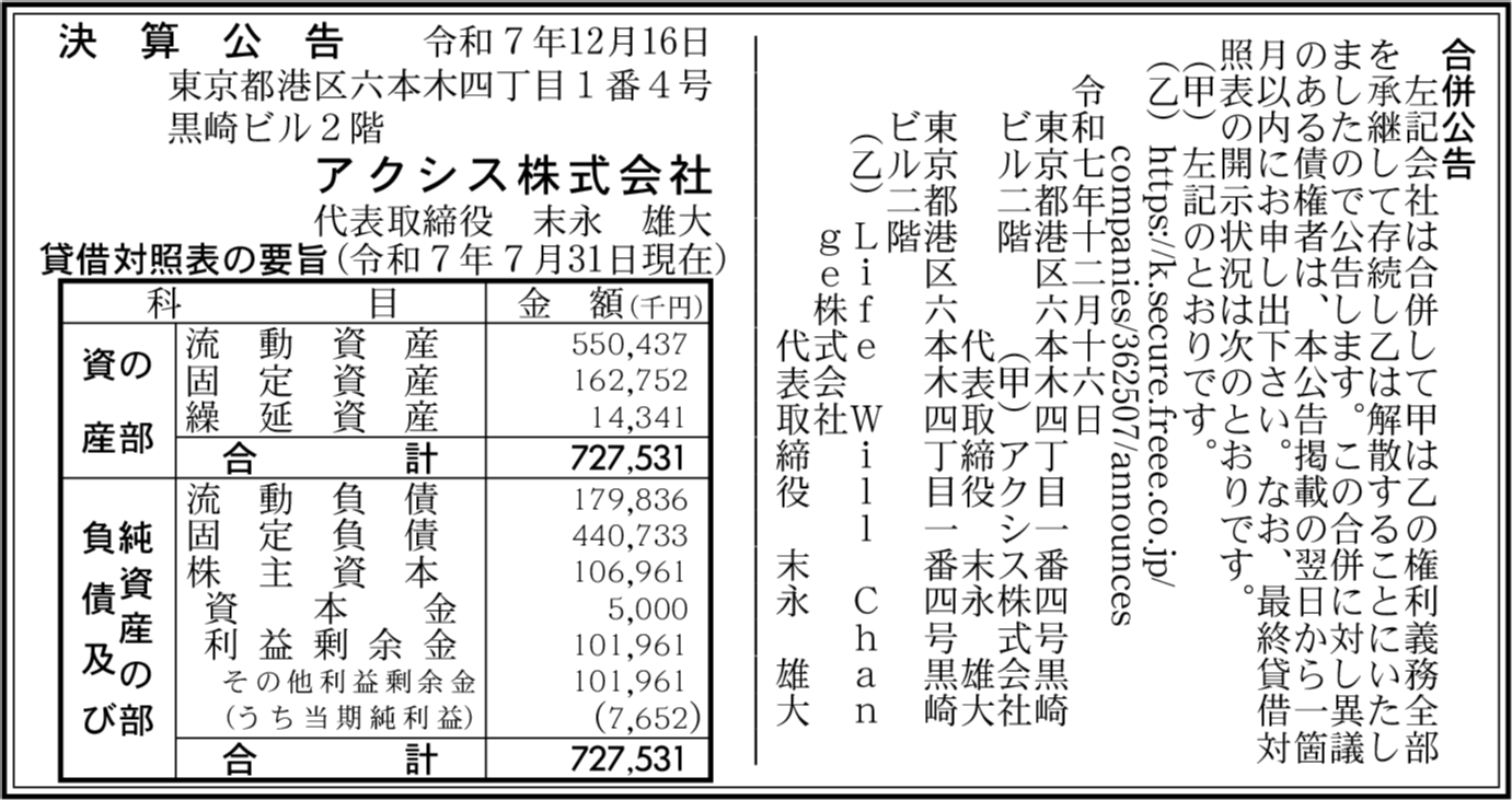 | 会社名 | アクシス株式会社 |