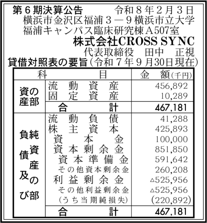 | 会社名 | 株式会社CROSS SYNC |