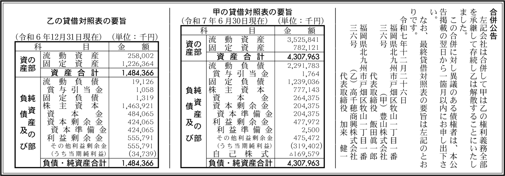 高千穂商興株式会社 福岡県北九州市戸畑区 【2024年12月期】 |