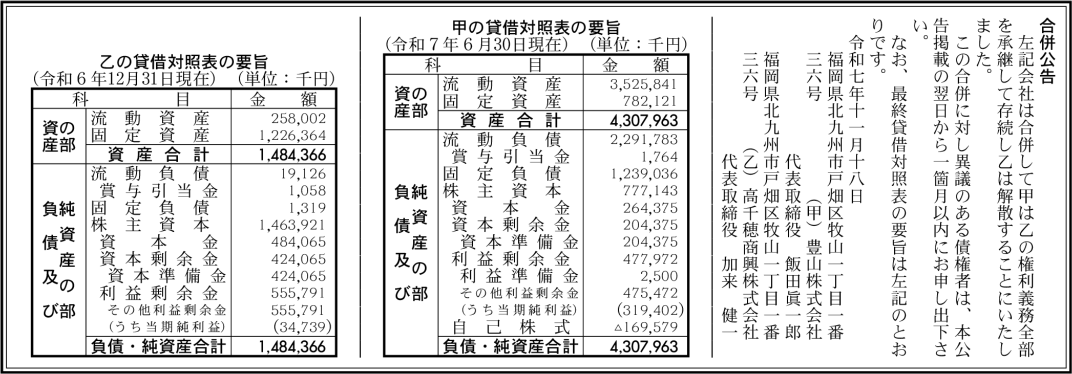 高千穂商興株式会社 福岡県北九州市戸畑区 【2024年12月期】 |