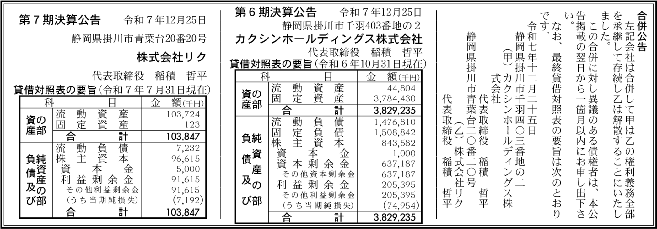 カクシンホールディングス株式会社 静岡県掛川市 【2024年10月期】 |