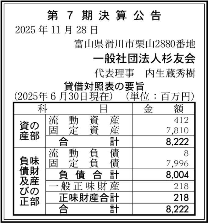 | 総資産 | 82億2,200万円 (▲7.22%) |