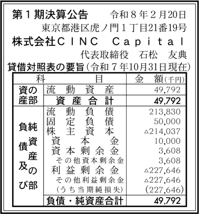 | 会社名 | 株式会社CINC Capital |