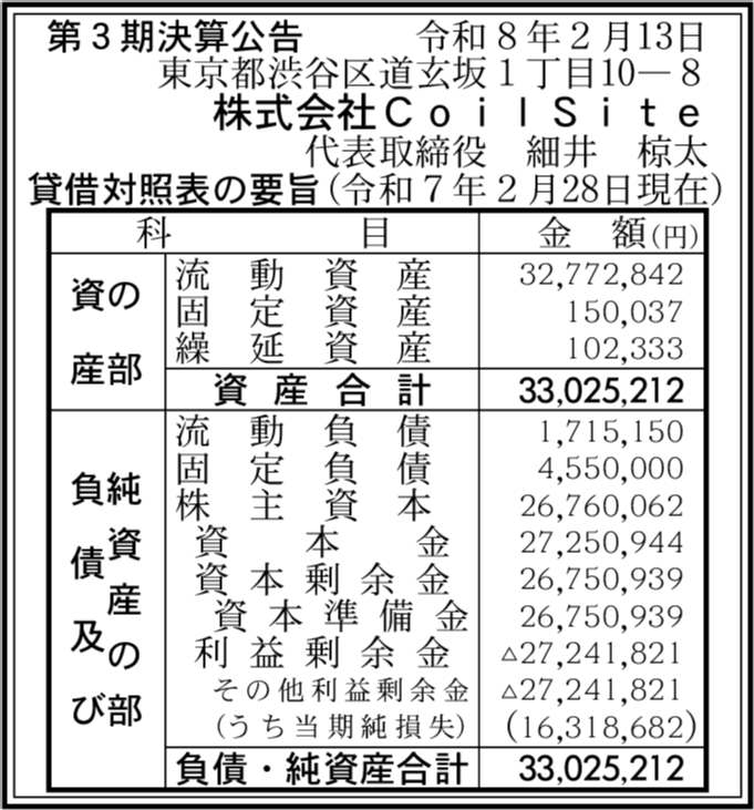 | 利益剰余金 | ▲2,724万1,821円 (赤字拡大) |