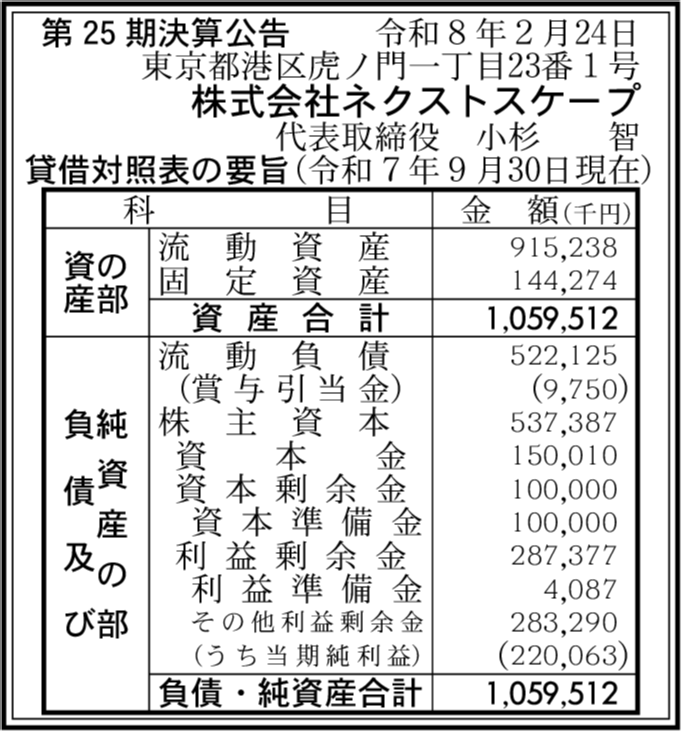 ネットマーブルジャパン株式会社 東京都港区 【2025年12月期】 |