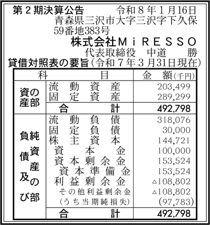 ミサワ株式会社 青森県三沢市 【2025年3月期】 |