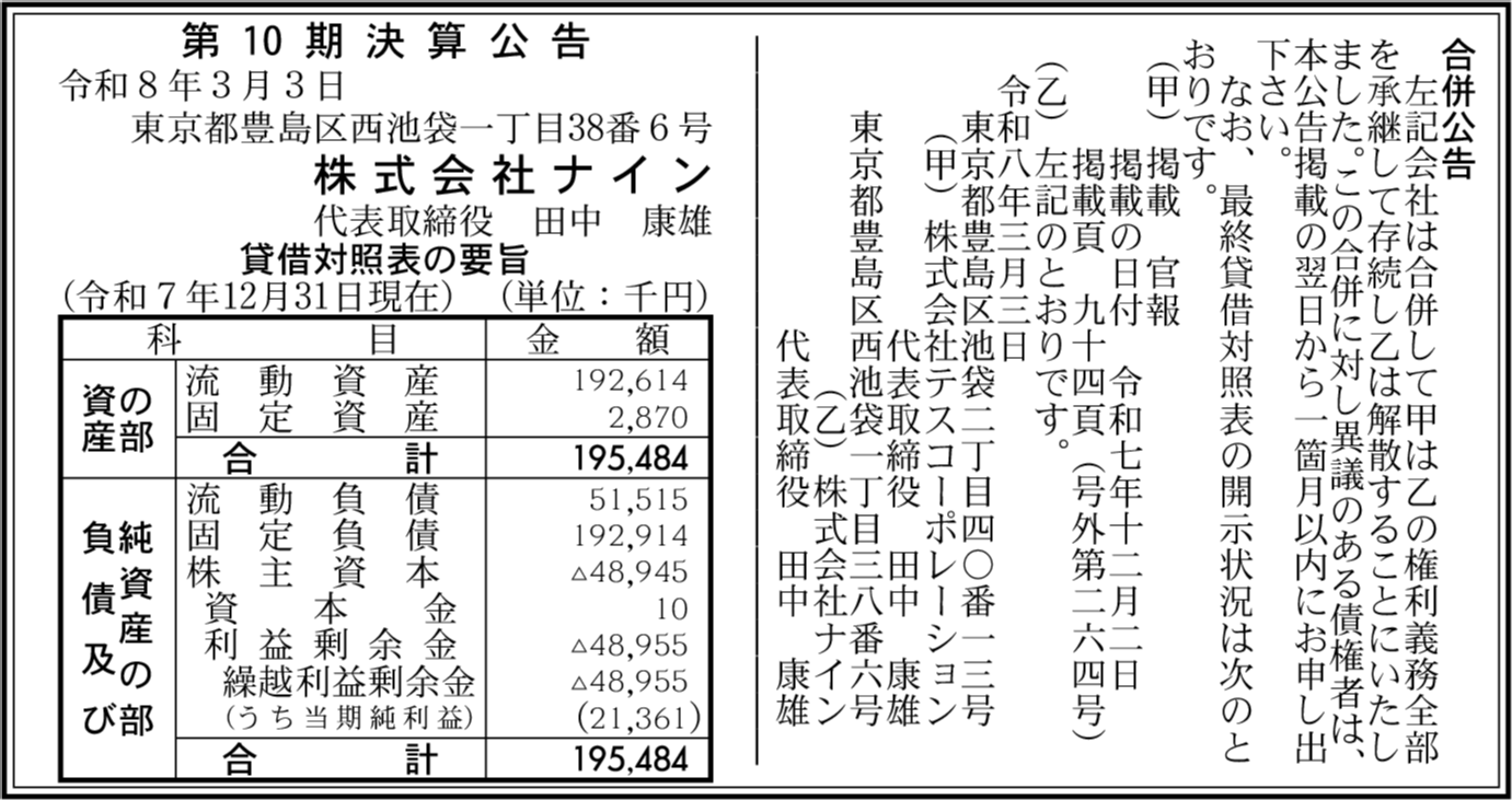 | 会社名 | 株式会社ナイン |
