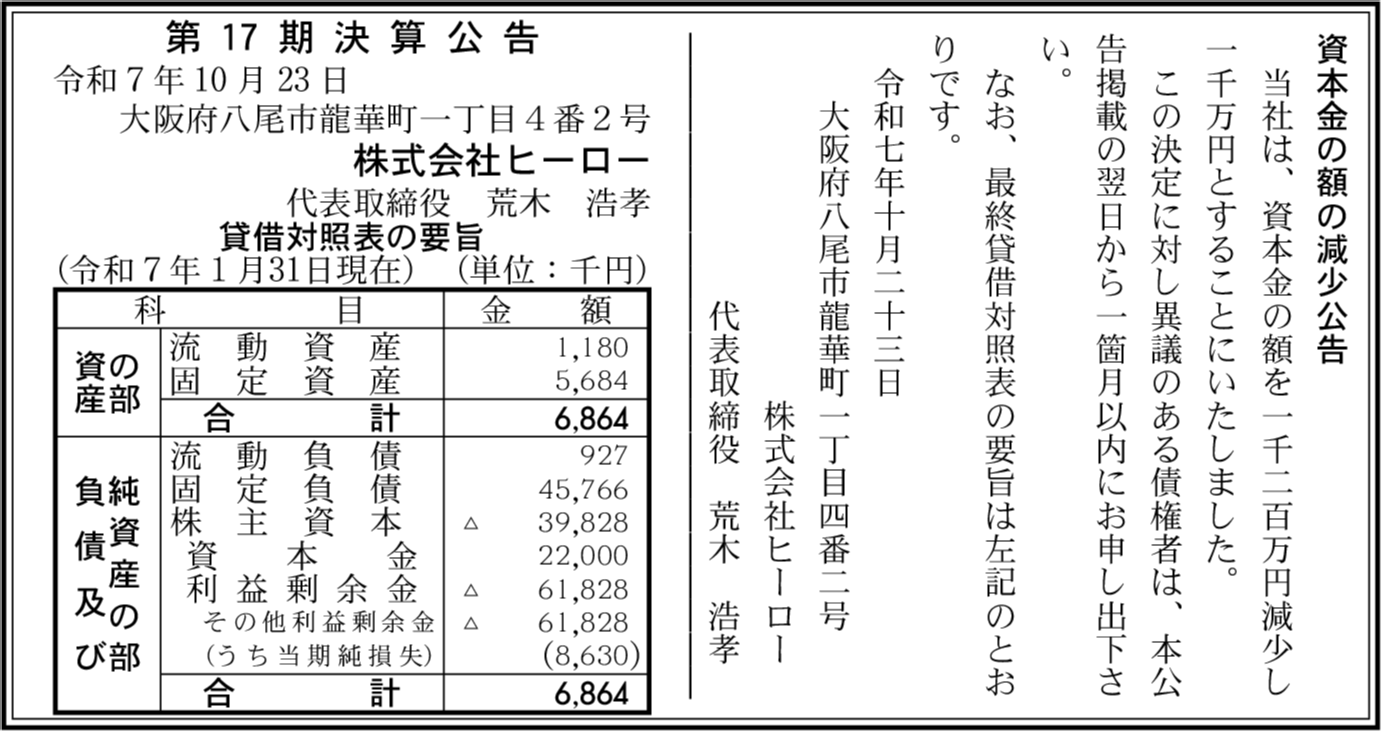 セントラル・ヒル・ジャパン株式会社 大阪府八尾市 【2025年1月期】 |