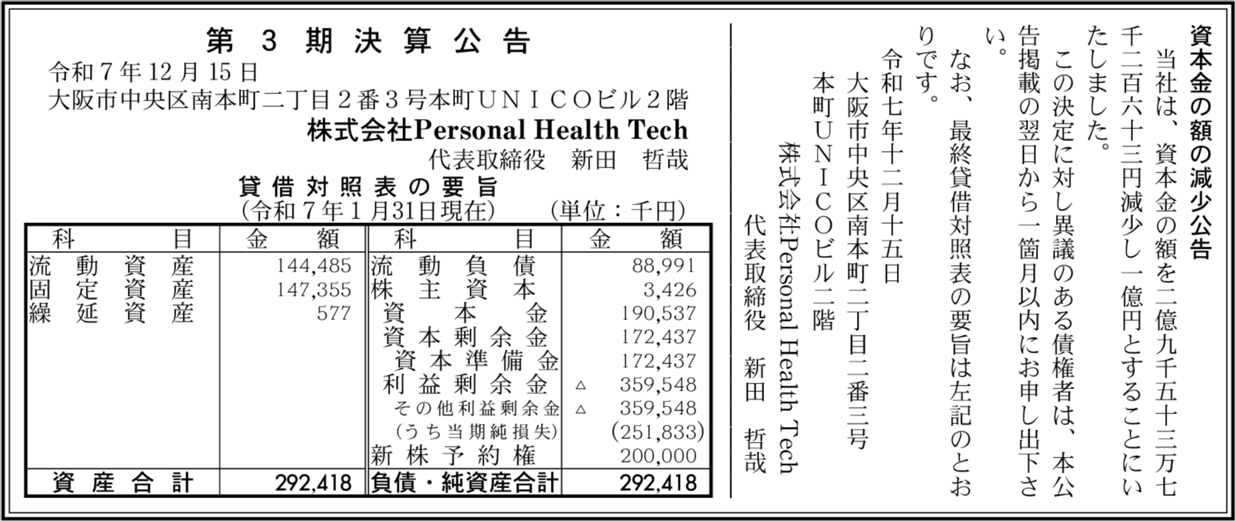株式会社RAISE閉鎖済み 大阪市中央区 【2025年1月期】 |