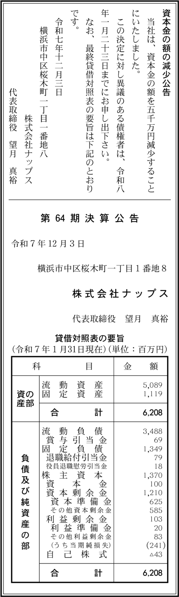 | 総資産 | 62億800万円 |