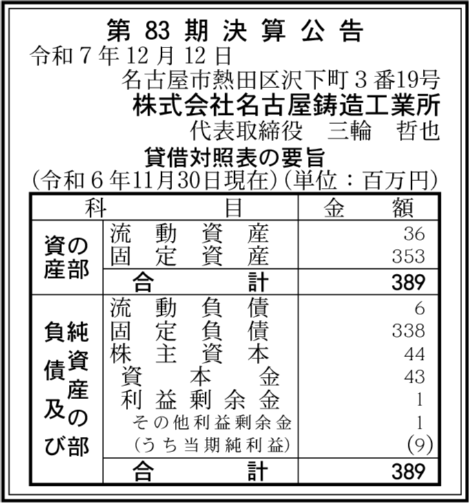 | 会社名 | 株式会社名古屋鋳造工業所 |