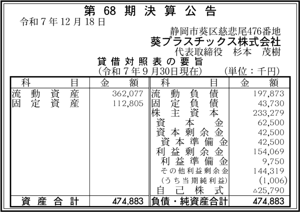 | 利益剰余金 | 1億5,406万9,000円 (+0.66%) |