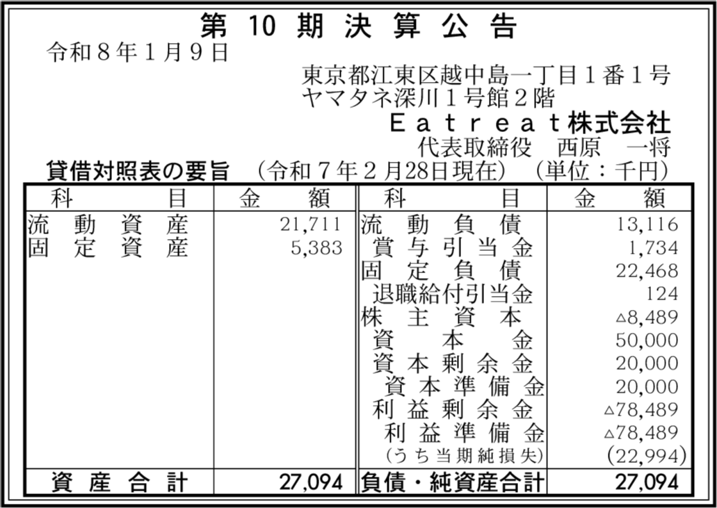 | 会社名 | Eatreat株式会社 |