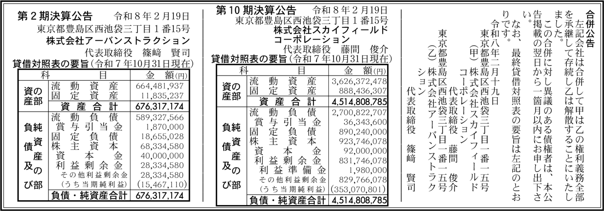 株式会社アーバンストラクション 東京都豊島区 【2025年10月期】 |