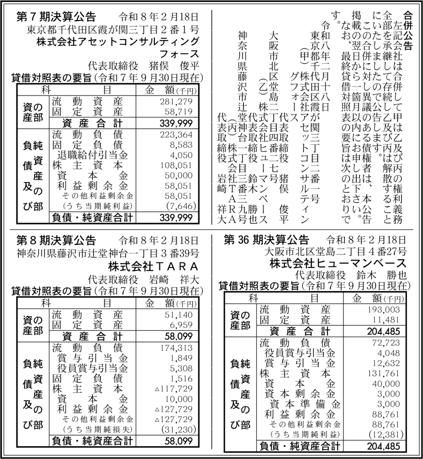 | 親会社・関連会社等 | 株式会社ヒューマンクリエイションホールディングス(8) |