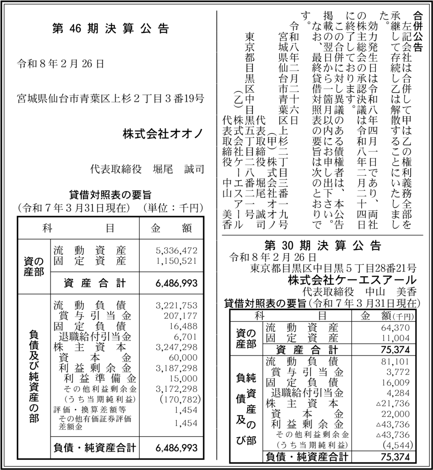 オネスト東日本株式会社 仙台市青葉区 【2025年7月期】 |