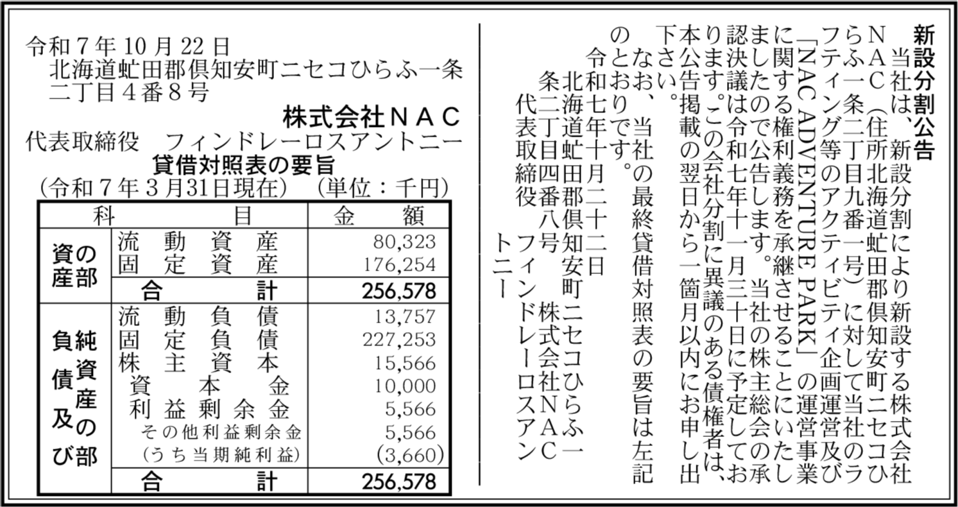 株式会社Niseko343 北海道虻田郡倶知安町 【2025年4月期】 |