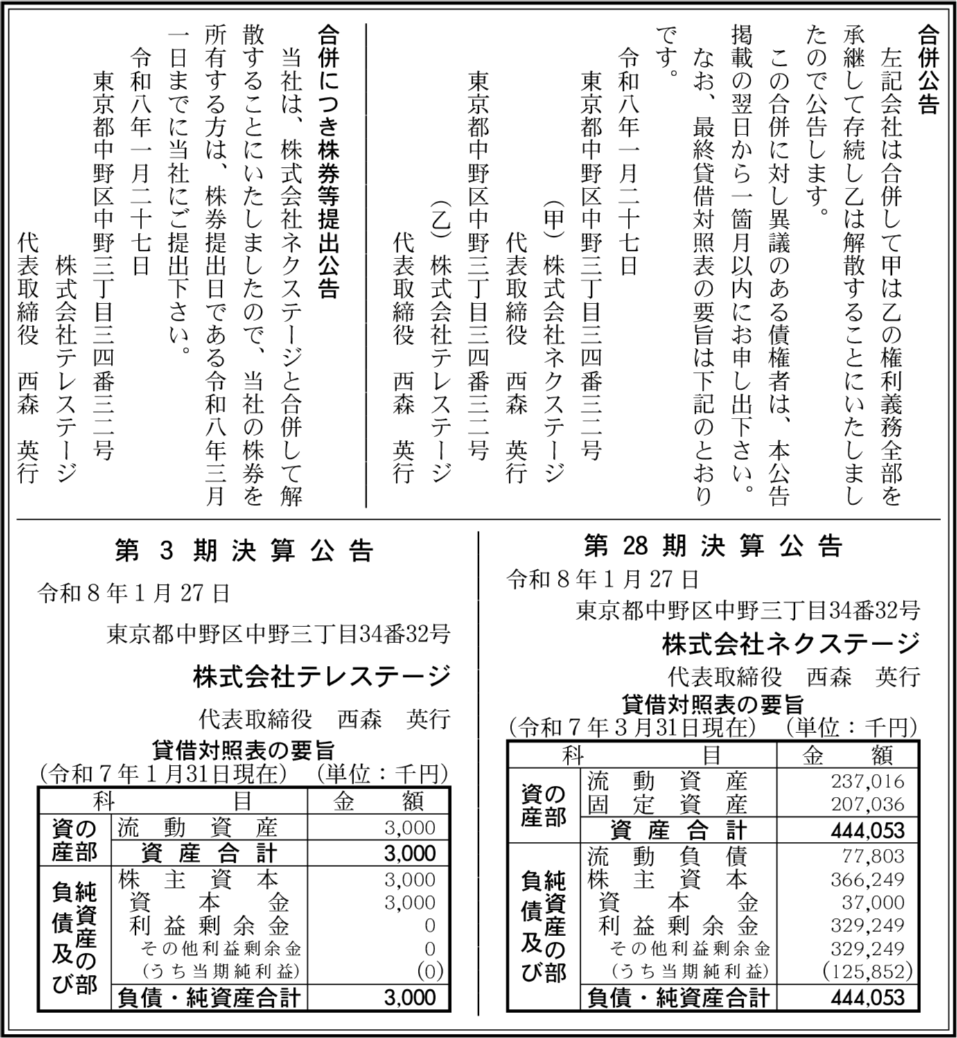 株式会社テレステージ 東京都中野区 【2025年1月期】 |