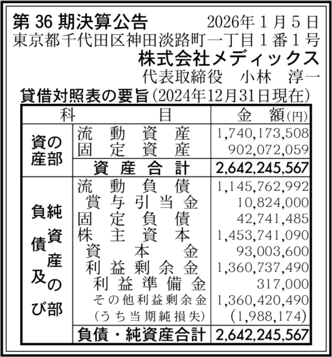 株式会社メディックスアーム東京閉鎖済み 東京都千代田区 【2023年3月期】 |