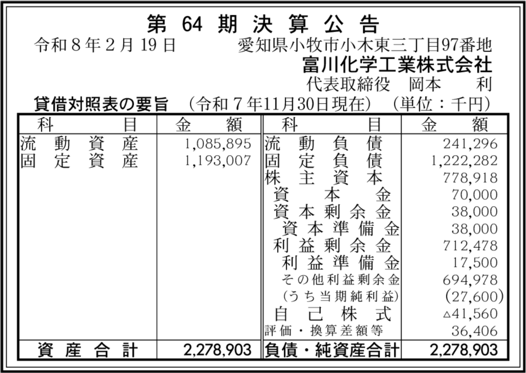 | 会社名 | 富川化学工業株式会社 |