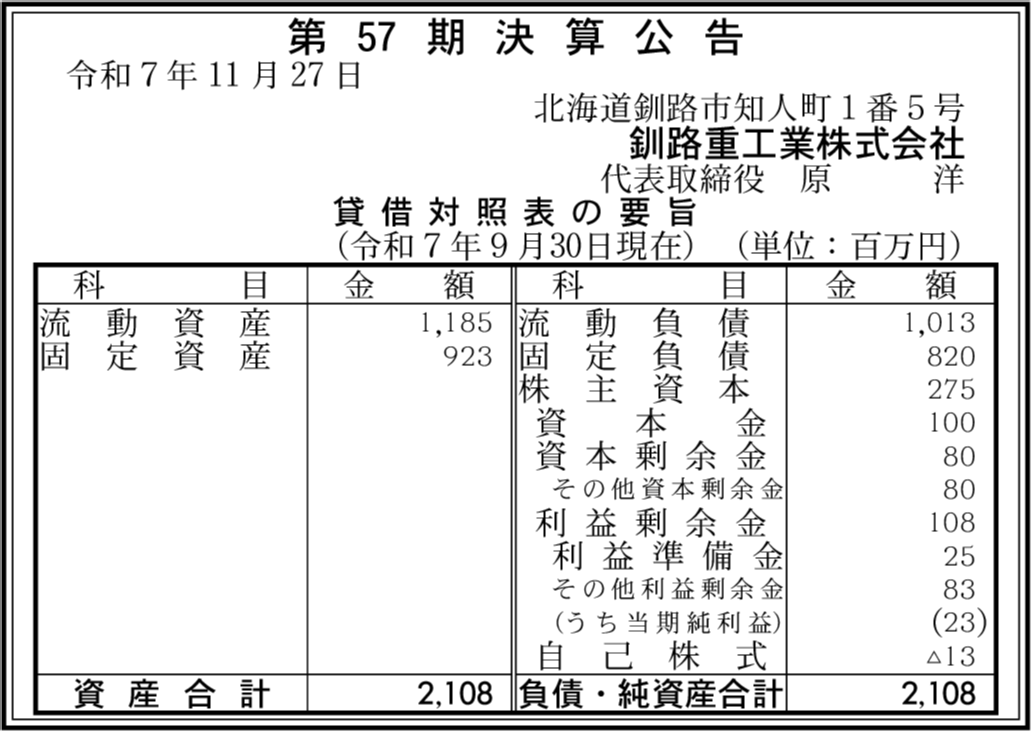 株式会社カネシン 北海道釧路市 【2025年6月期】 |