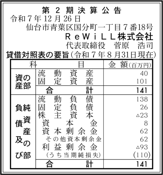 リブライト株式会社閉鎖済み 宮城県仙台市青葉区 【2021年8月期】 |