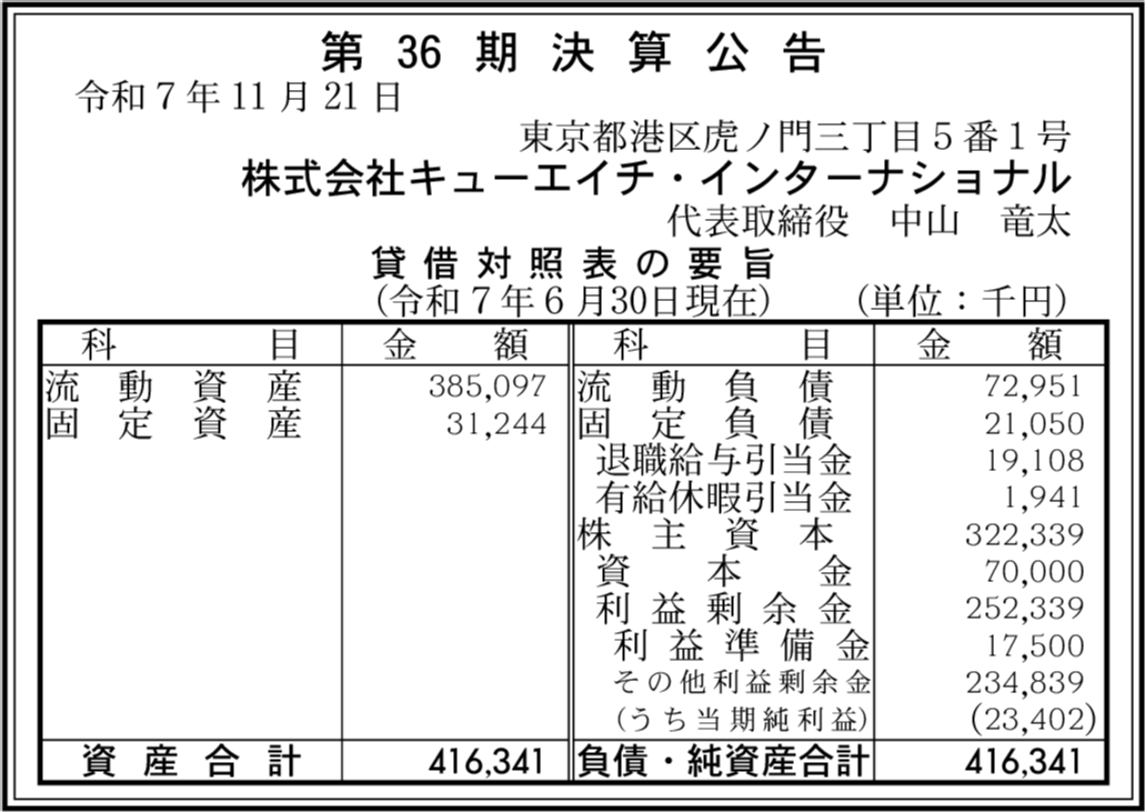 | 会社名 | 株式会社キューエイチ・インターナショナル |