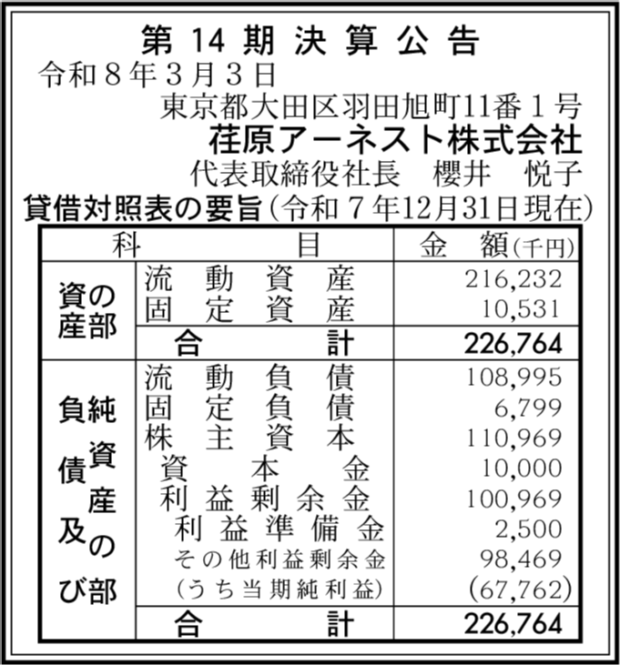 | 利益剰余金 | 1億96万9,000円 (+57.98%) |