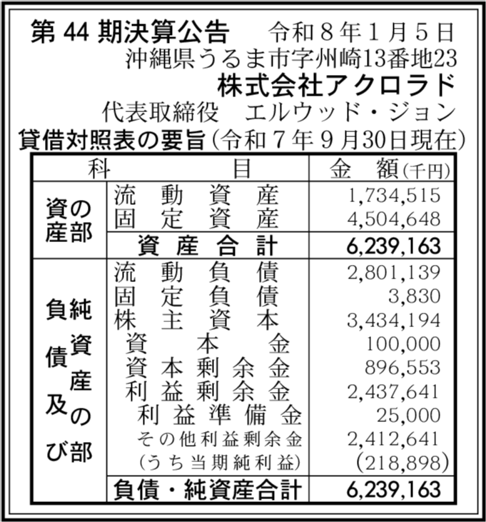 株式会社北斗販売閉鎖済み 沖縄県うるま市 【2024年9月期】 |