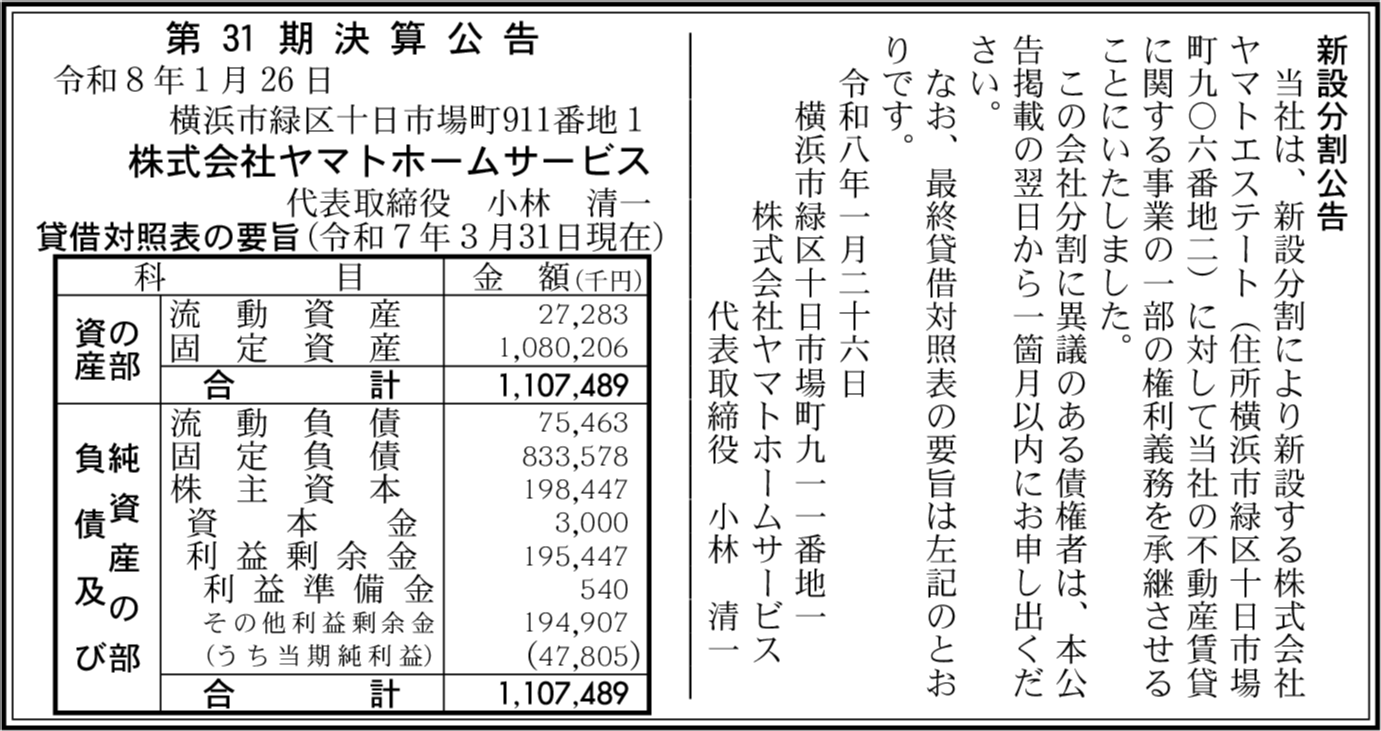 | 会社名 | 株式会社ヤマトホームサービス |