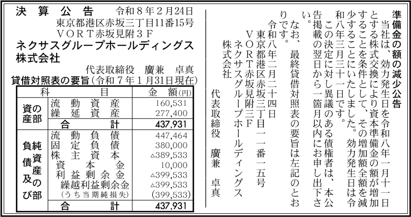 | 会社名 | ネクサスグループホールディングス株式会社 |
