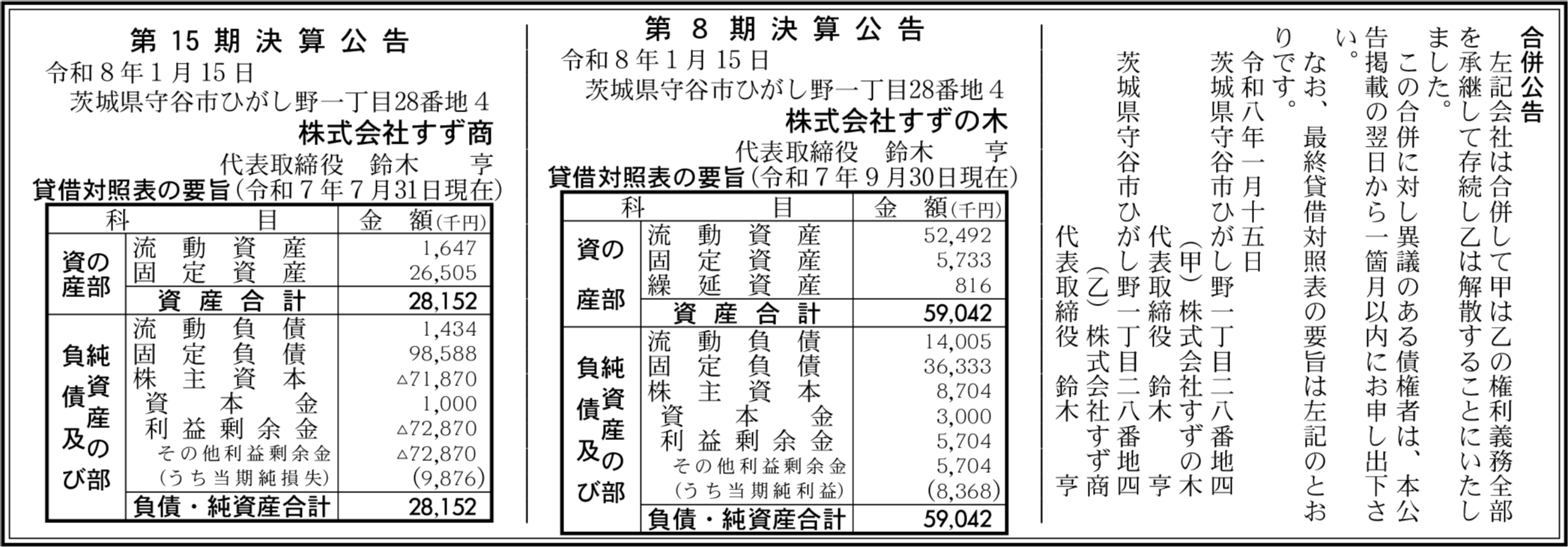 株式会社すずの木 茨城県守谷市 【2025年9月期】 |