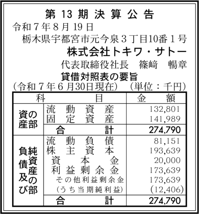 株式会社ブレス 栃木県宇都宮市 【2025年7月期】 |