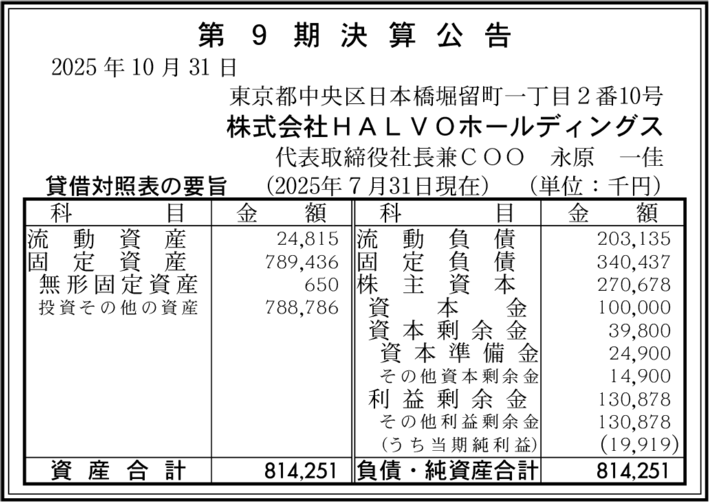 株式会社HALVO技術研究所 東京都中央区 【2025年7月期】  |