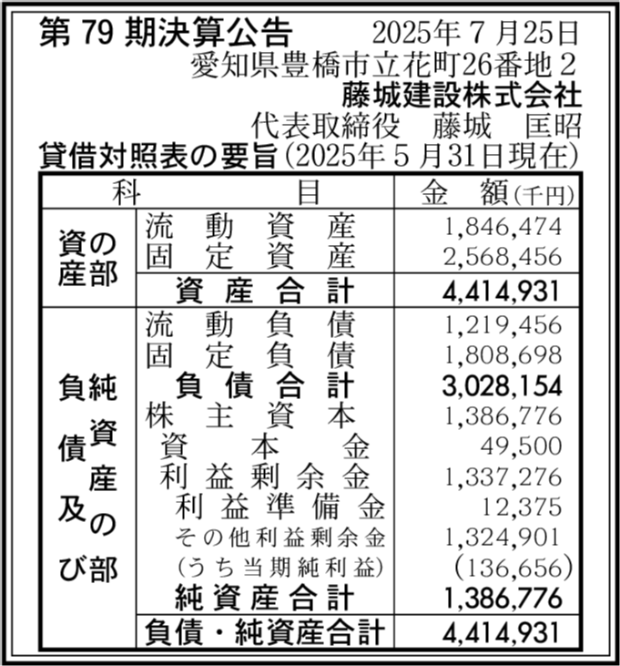 | 会社名 | 藤城建設株式会社 |