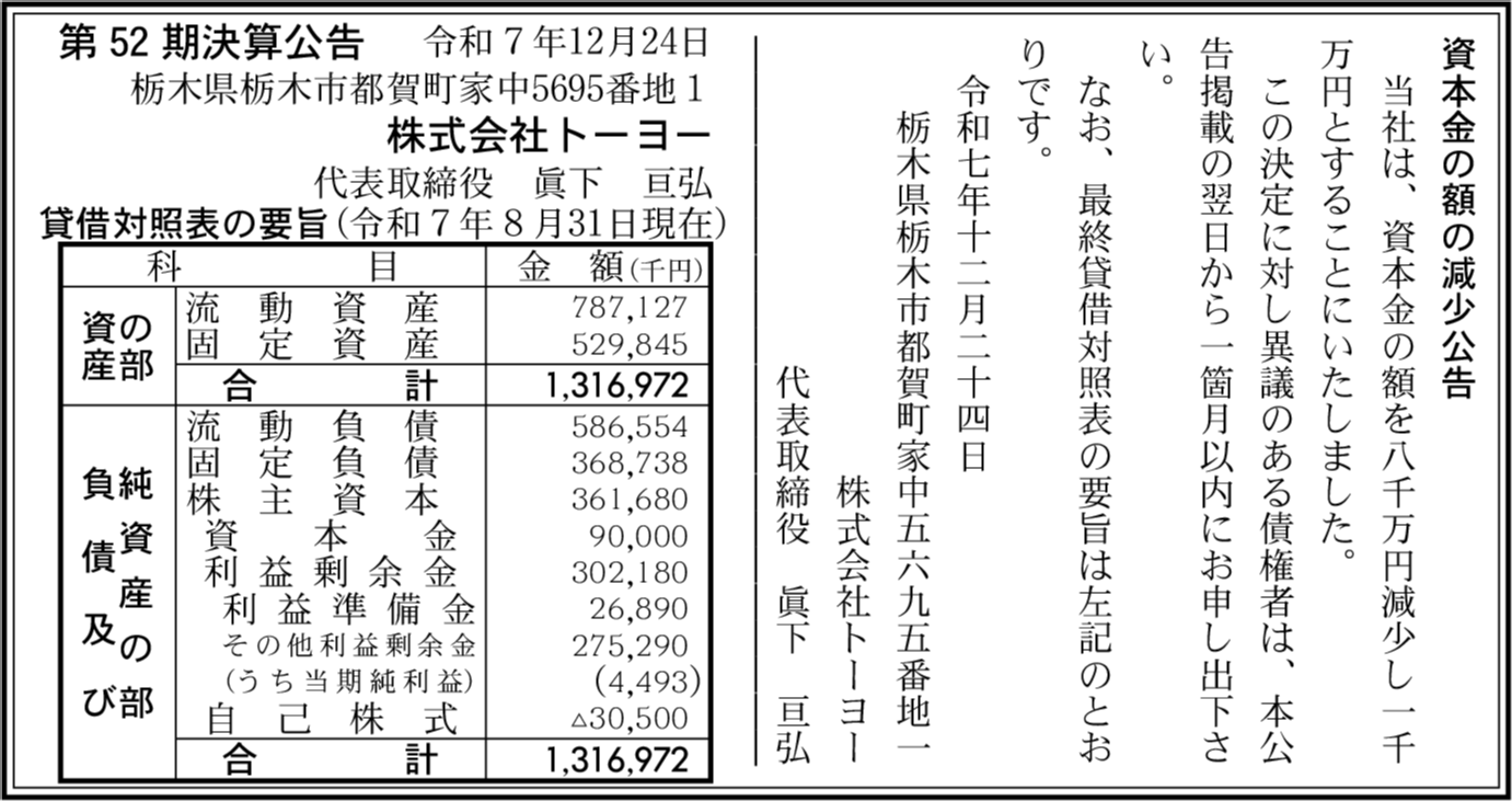 渡邉工業株式会社 栃木県栃木市 【2025年7月期】 |