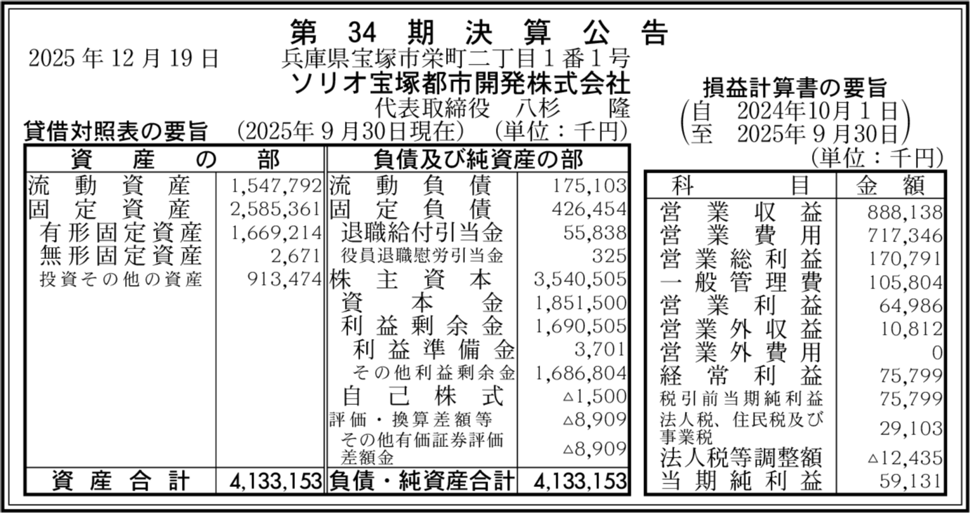 | 会社名 | ソリオ宝塚都市開発株式会社 |