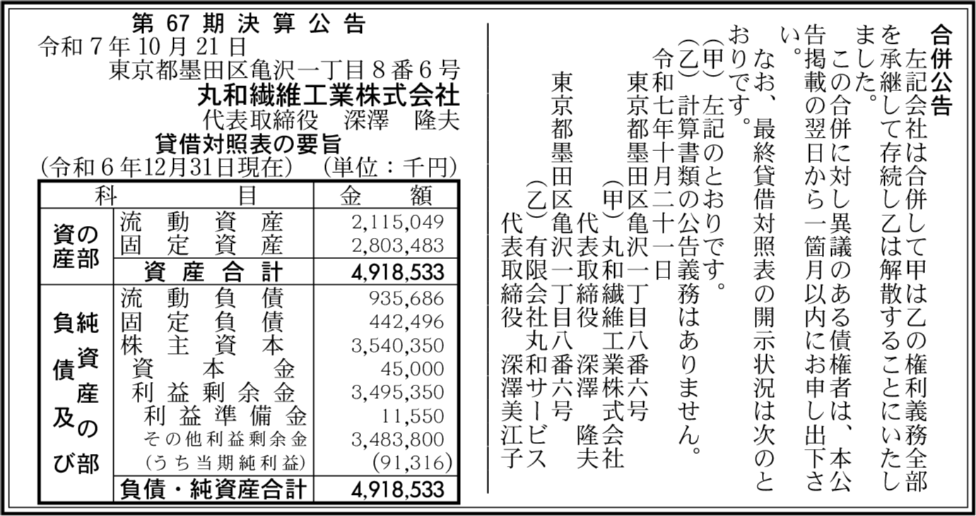 | 会社名 | 丸和繊維工業株式会社 |