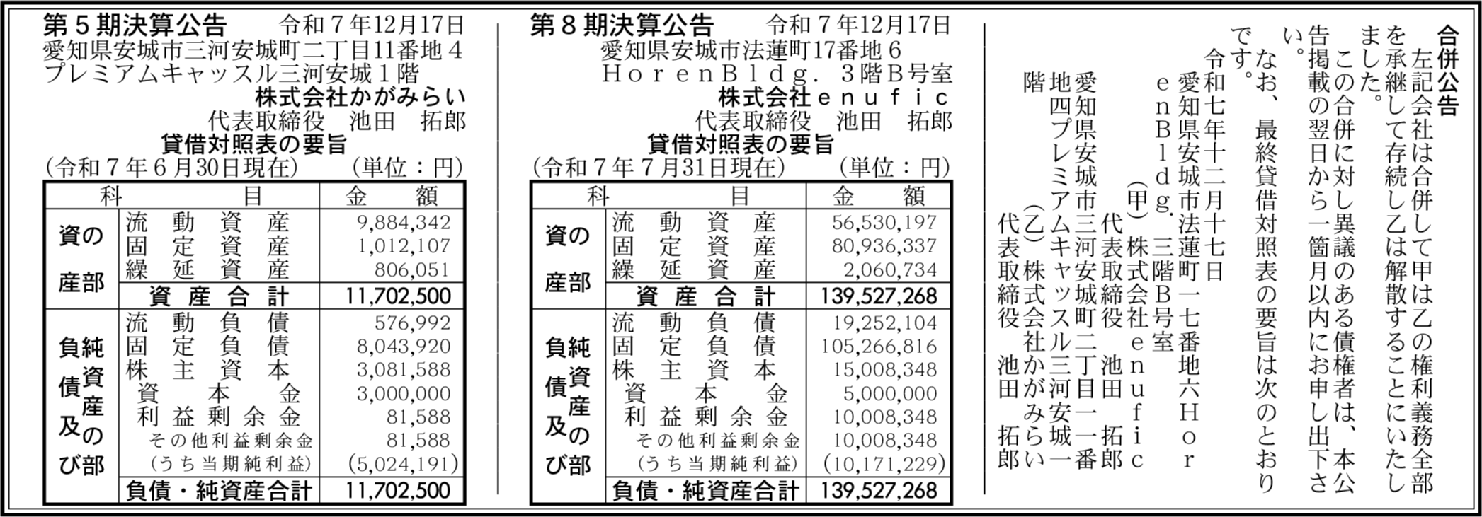 株式会社かがみらい 愛知県安城市 【2025年6月期】 |