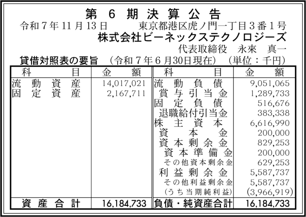 | 会社名 | 株式会社ビーネックステクノロジーズ |
