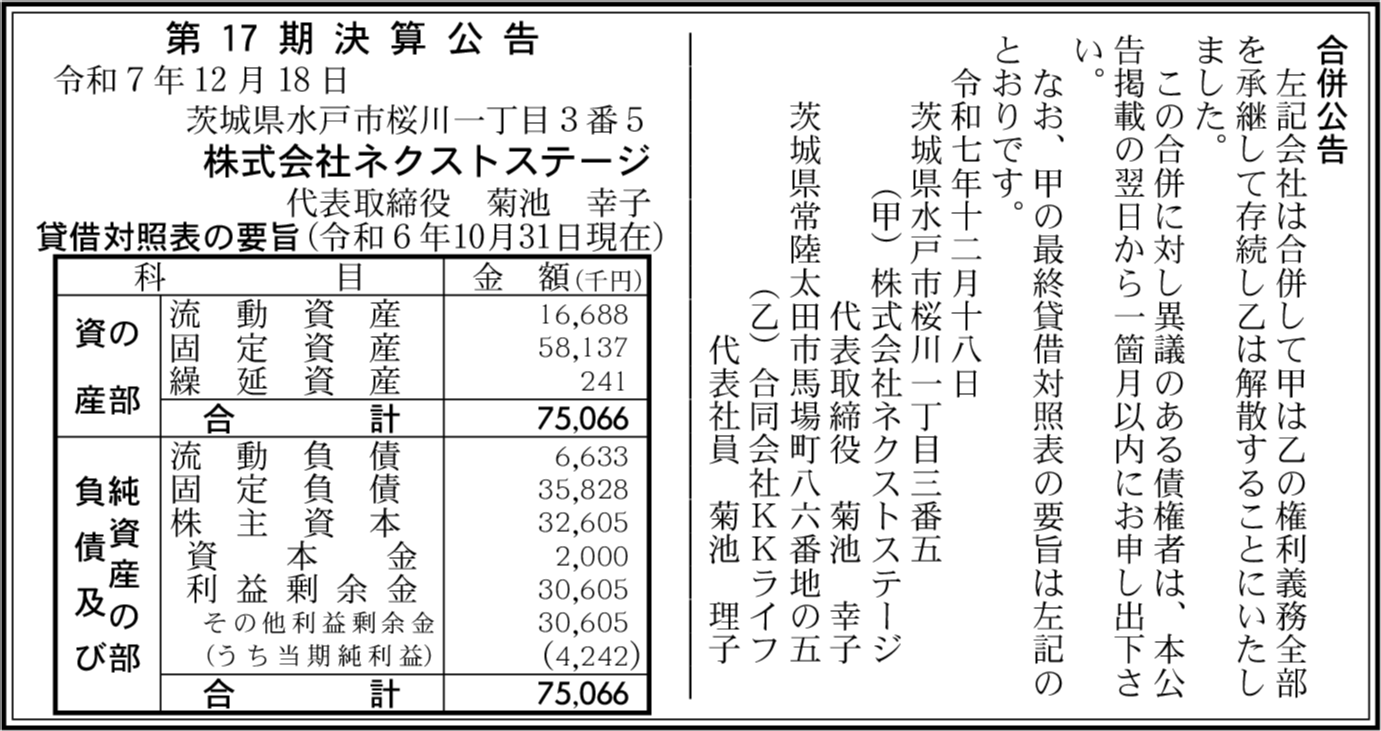 | 会社名 | 株式会社ネクストステージ |
