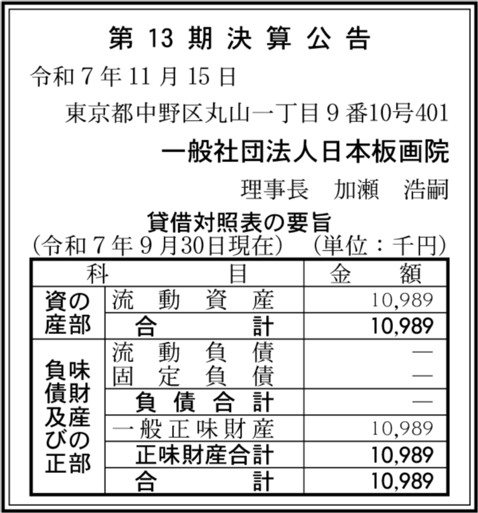 | 会社名 | 一般社団法人日本板画院 |