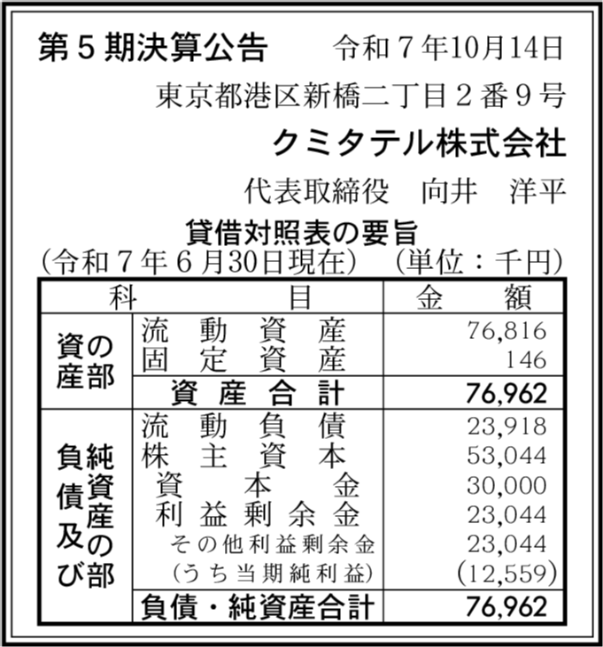 タタンリーシング1株式会社 東京都港区 【2025年8月期】 |