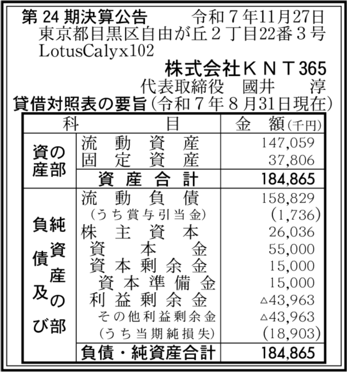 | 利益剰余金 | △4,396万3,000円 (赤字拡大) |