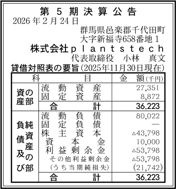 | 利益剰余金 | ▲5,379万8,000円 (赤字拡大) |