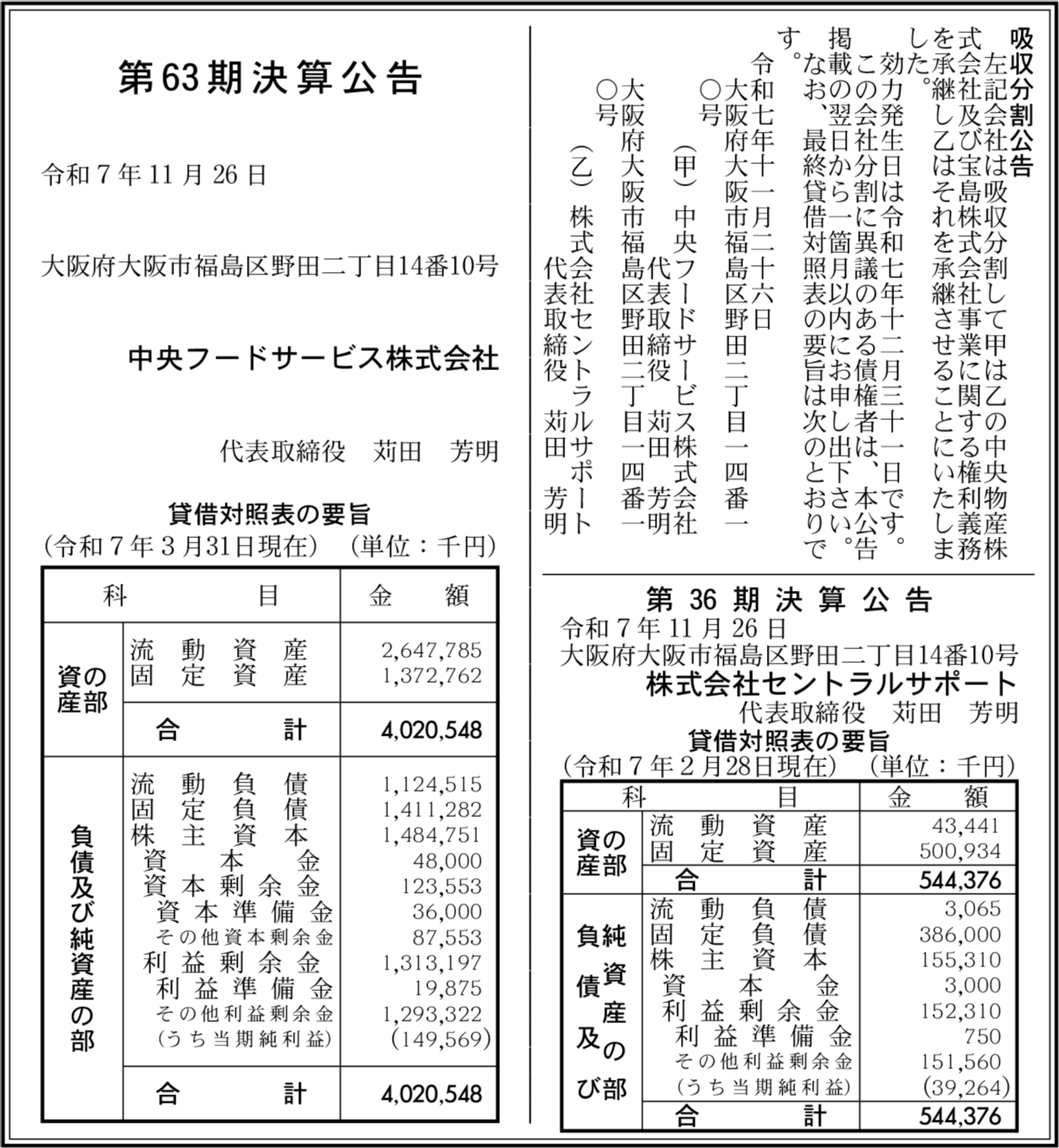 株式会社セントラルサポート 大阪府大阪市福島区 【2025年2月期】 |