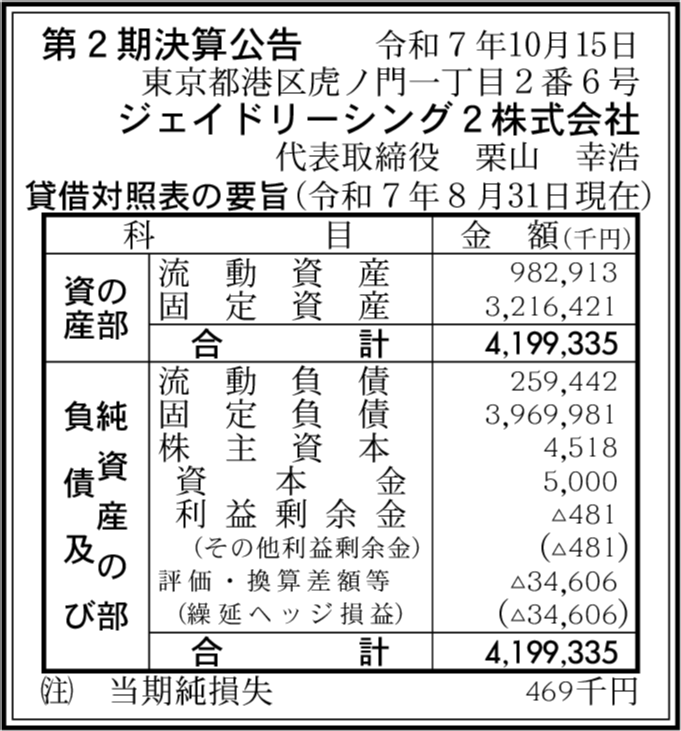 タタンリーシング2株式会社 東京都港区 【2025年8月期】 |