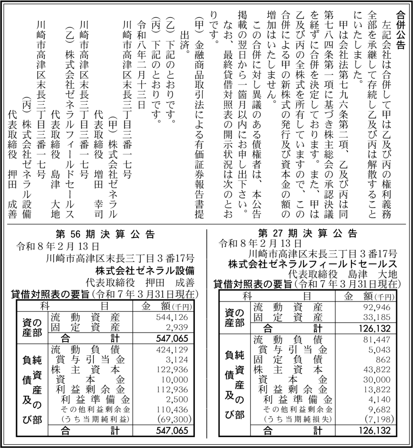 株式会社ゼネラルフィールドセールス 川崎市高津区 【2025年3月期】 |