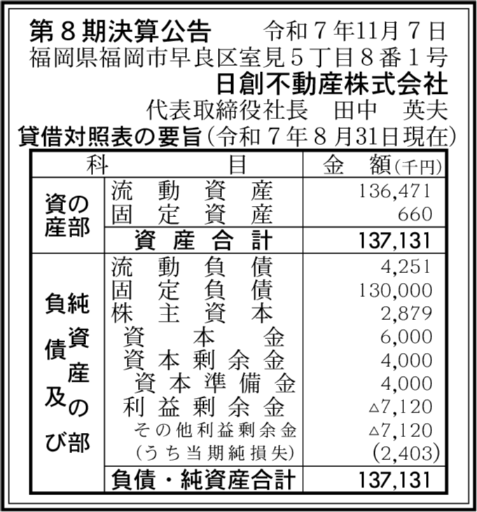 株式会社西日本ワンダー社 福岡市早良区 【2025年7月期】 |