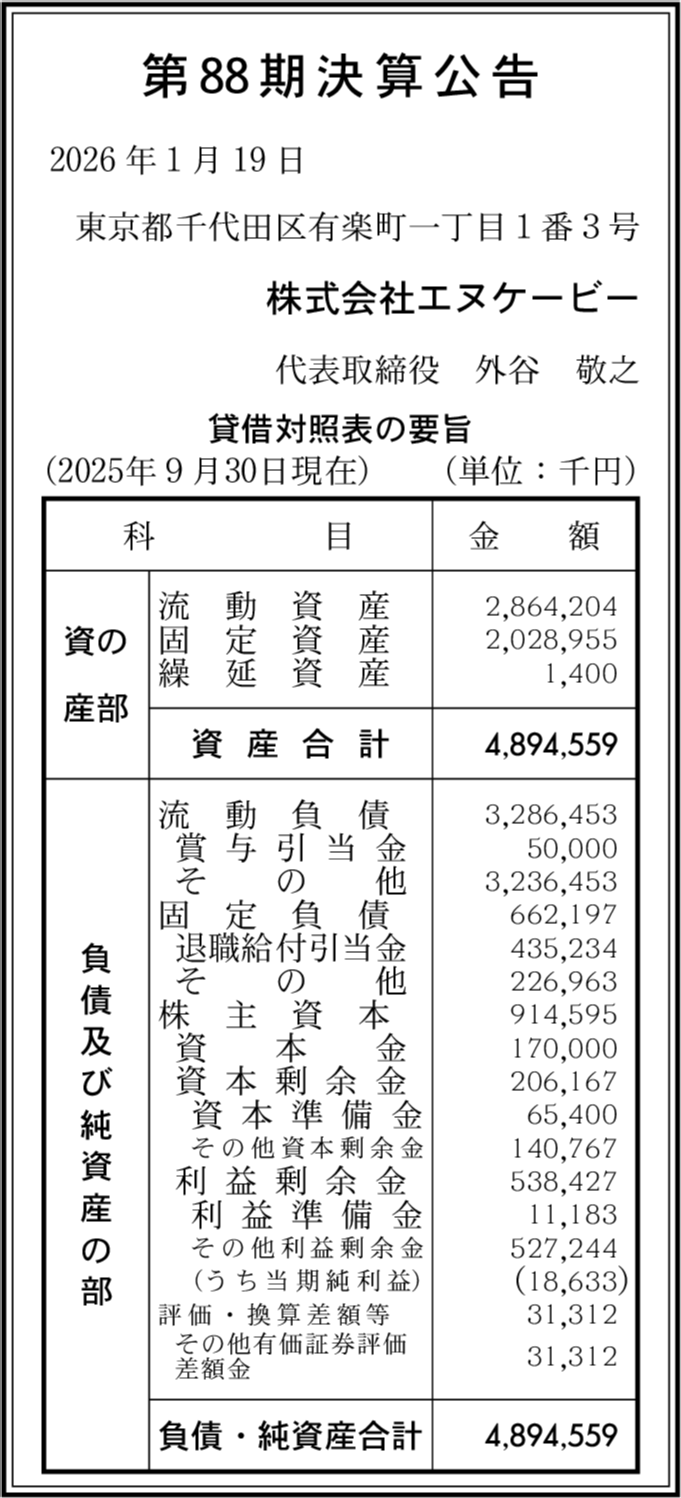 株式会社NKB Y’s 横浜市西区 【2025年9月期】 |